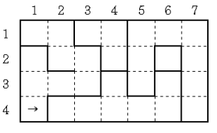 대략 위의 그림과 같이 생긴 성곽이 있다. 굵은 선은 벽을 나타내고, 점선은 벽이 없어서 지나다닐 수 있는 통로를 나타낸다. 이러한 형태의 성의 지도를 입력받아서 다음을 계산하는 프로그램을 작성하시오.