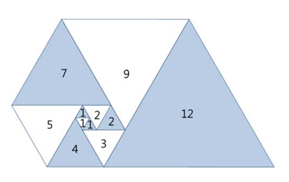 아래 그림과 같이 삼각형이 나선 모양으로 놓여져 있다. 첫 삼각형은 정삼각형으로 변의 길이는 1이다. 그 다음에는 다음과 같은 과정으로 정삼각형을 계속 추가한다. 나선에서 가장 긴 변의 길이를 k라 했을 때, 그 변에 길이가 k인 정삼각형을 추가한다.